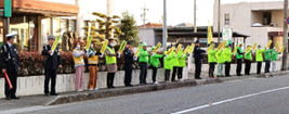 - 年末の交通安全県民運動期間中の12月10日(水)に、桑部まちづくり拠点施設前において、ドライバーへの啓発活動(ミルミルウェーブ)を実施しました。