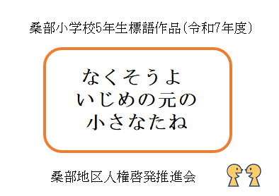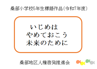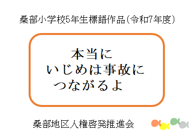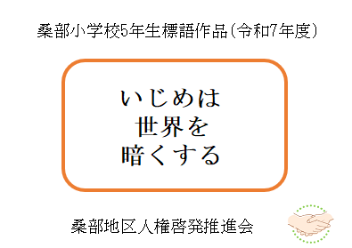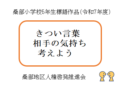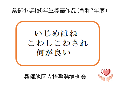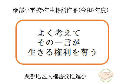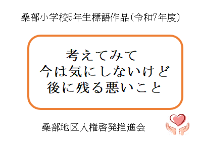 - 令和7年度に桑部小学校の6年生が制作した人権ポスターと、5年生が制作した人権標語です。