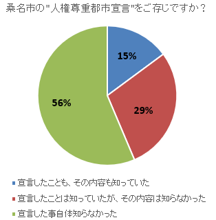 桑名市が「人権尊重都市宣言」をしたことも、その内容もご存じの方は、昨年度より4ポイント増加しました。