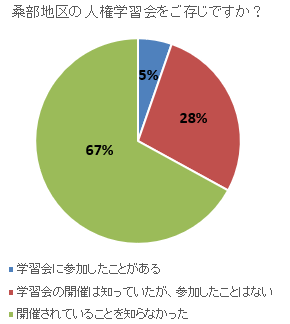 桑部地区で実施している人権学習会に参加された方の割合はほぼ同じでしたが、開催されていることをご存じでない方が8ポイント増加しました。