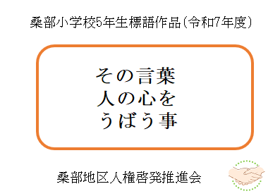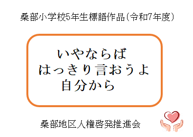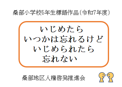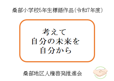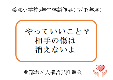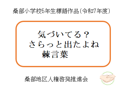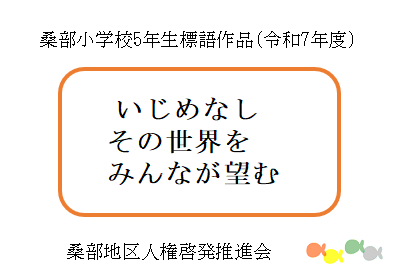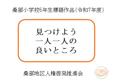 - 令和7年度に桑部小学校の6年生が制作した人権ポスターと、5年生が制作した人権標語です。