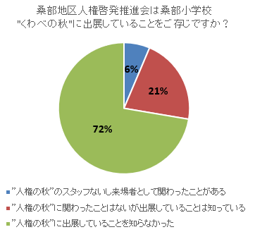桑部地区で実施している人権学習会に参加された方の割合はほぼ同じでしたが、開催されていることをご存じでない方が8ポイント増加しました。